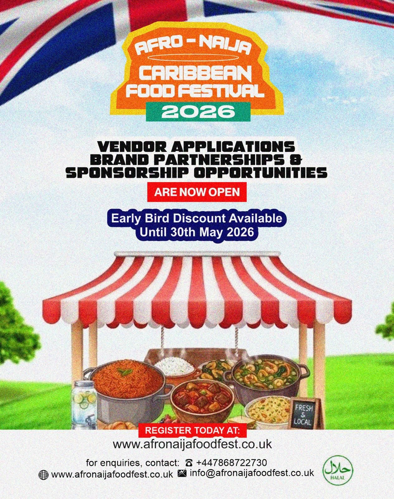 Get your tickets now and be part of the biggest African food festival in the UK! Whether you’re coming with family, friends, or on your own — there’s something for everyone. VIP access, family-friendly activities, and unforgettable food await.